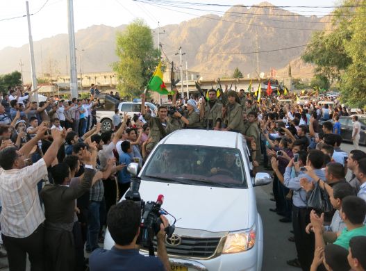 Üçüncü fotoğraf da Irak’tan, ama bu sefer Kerkük’ten. (IŞ)İD’in Kürt topraklarında saldırılarını artırması üzerine gözler petrol zengini bu kente çevrildi. Kerkük yönetiminde ağırlığı olan Kürdistan Yurtseverler Birliği (KYB) yetkilileri destek için PKK/KCK’ya başvurdu. Bu fotoğrafta da görüldüğü gibi, Kandil’den gelen HPG’liler Kerküklü Kürtler tarafından coşkuyla karşılandı.